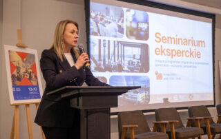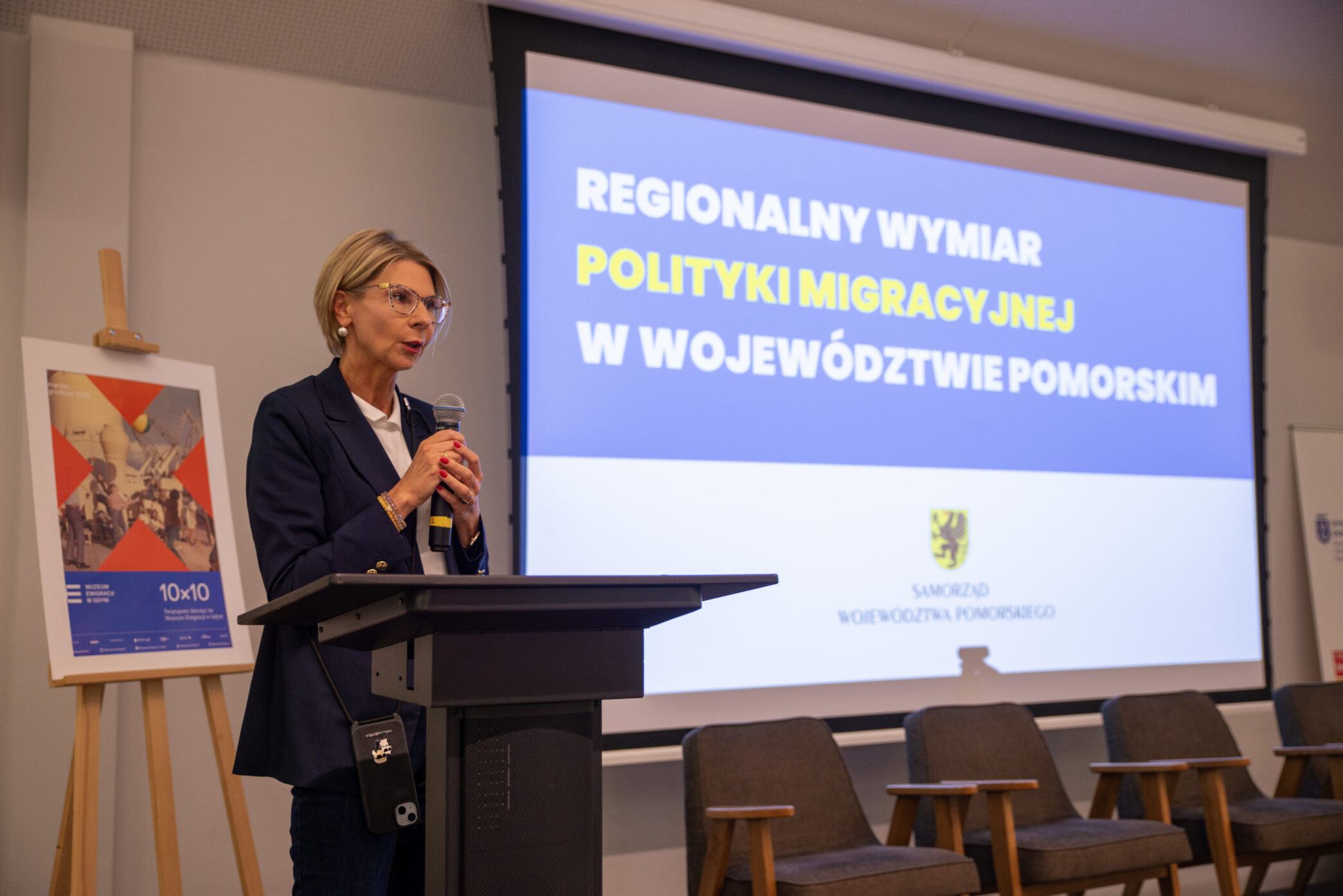 - Agnieszka Zabłocka, Dyrektorka Departamentu Kancelarii Marszałka Województwa, przybliżyła regionalny wymiar polityki migracyjnej w województwie pomorskim.