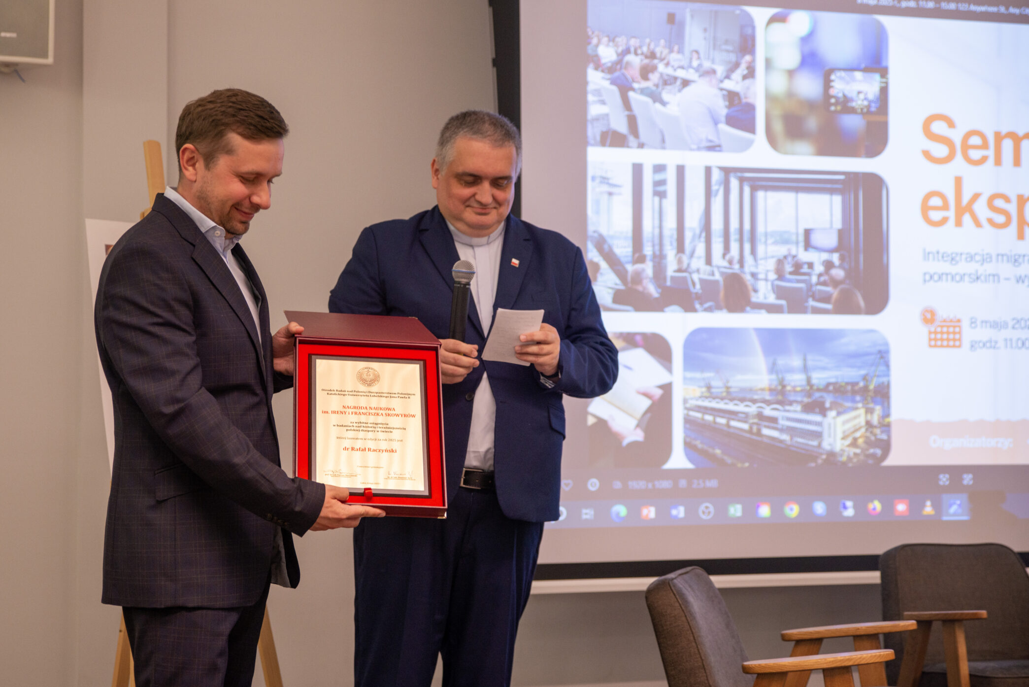Miło nam też poinformować, że podczas wydarzenia dr Rafał Raczyński został laureatem nagrody naukowej im. Ireny i Franciszka Skowyrów za wybitne osiągnięcia w badaniach nad historią i teraźniejszością polskiej diaspory w świecie. Nagrodę przekazał ks. dr hab. Sławomir Zych, Dyrektor Ośrodka Badań nad Polonią i Duszpasterstwem Polonijnym Katolickiego Uniwersytetu Lubelskiego.