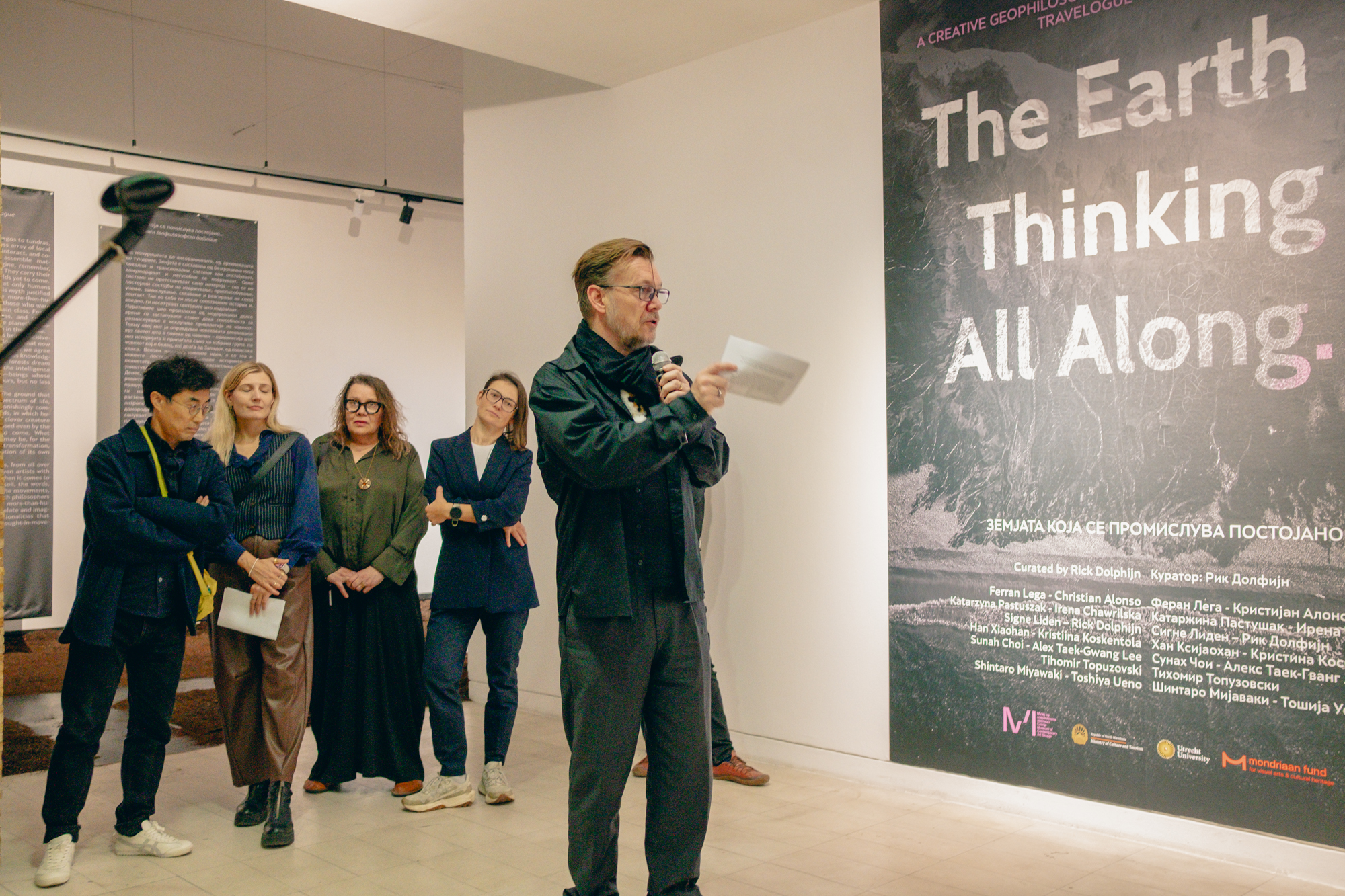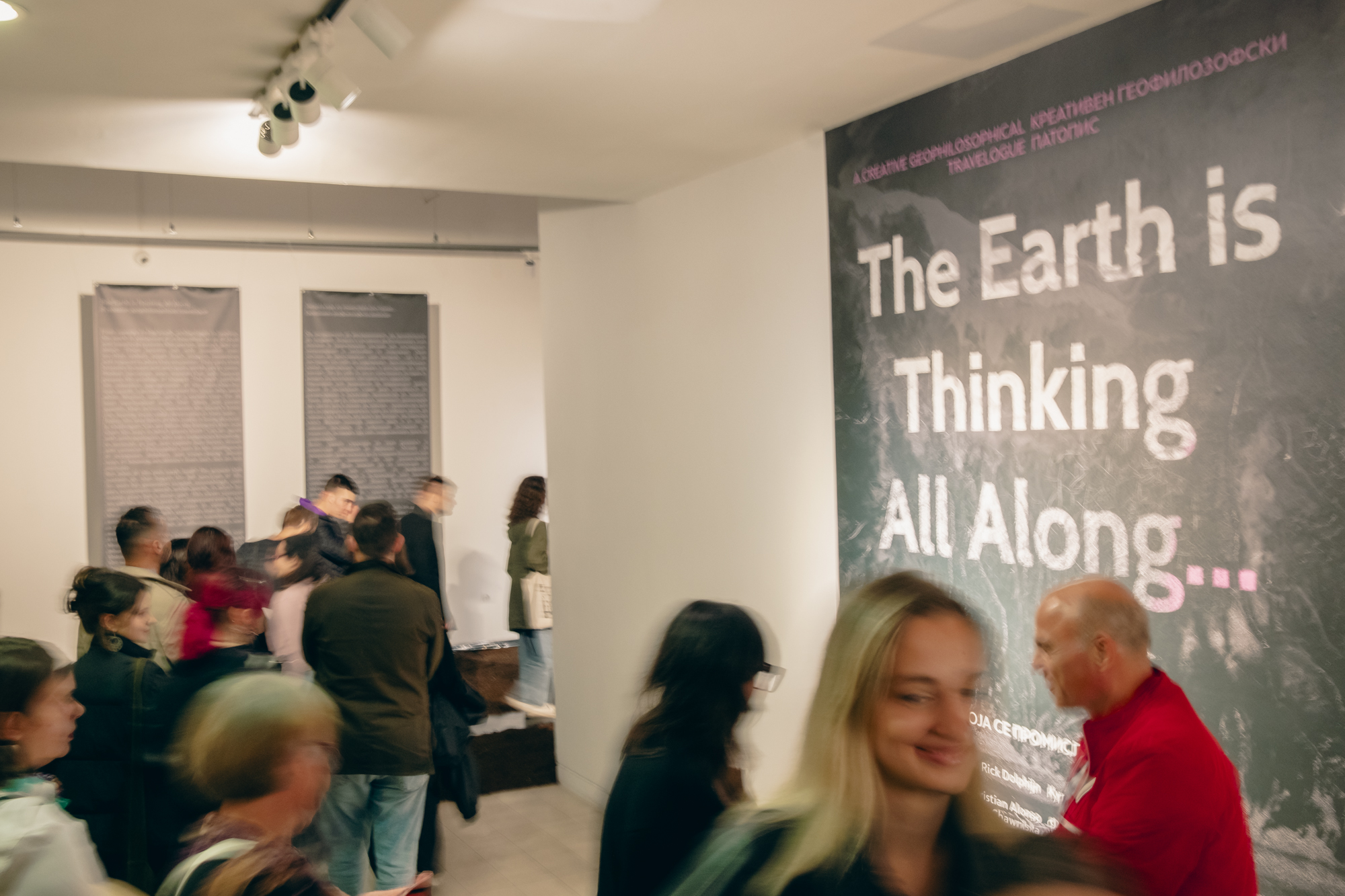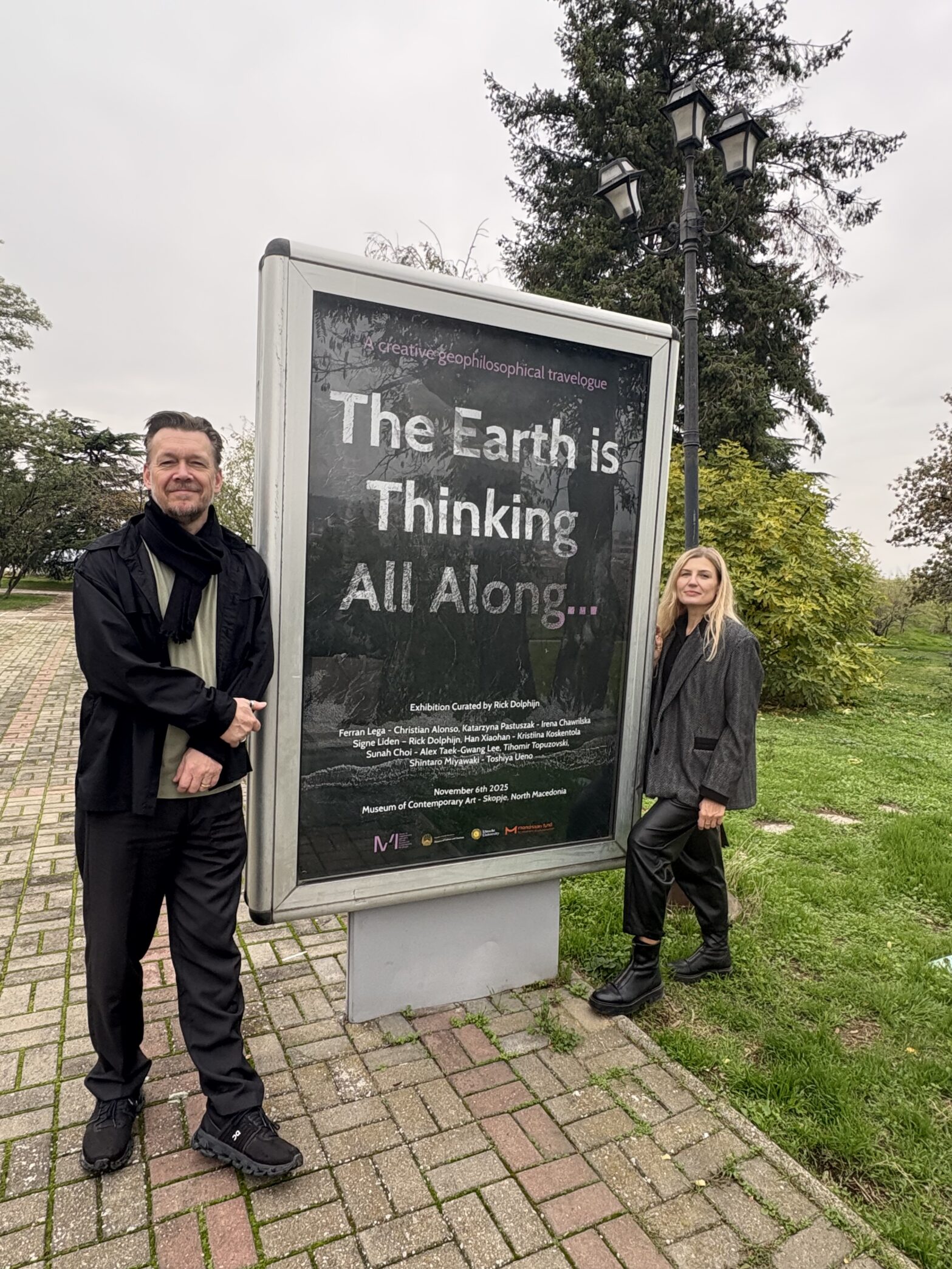 6 listopada 2025 r. w Muzeum Sztuki Współczesnej w Skopje (Macedonia Północna) odbył się uroczysty wernisaż wystawy „The Earth is Thinking All Along…”, w której mieliśmy okazję zaprezentować instalację wideo „Swamp-scapes of Care” duetu Katarzyny Pastuszak i Nat Chylińskiej w dialogu z ramą konceptualną „Words cannot capture the swamp. How to re-sense swamp life?” Ireny Chawrilskiej, koordynatorki programu More-than-Human Studies Lab Centrum Zrównoważonego Rozwoju UG.