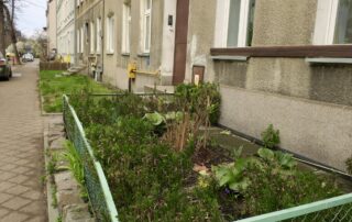 Justyna was lucky to learn more about Nowy Port, one of the northern districts of the city, thanks to Natalia Gatzke, Local Community Organiser working at the Independent Community Organisation Department that is part of the Municipal Family Assistance Centre in Gdańsk (PL: Organizatorka Społeczności Lokalnej, Samodzielny Referat Organizowania Społeczności w Miejskim Ośrodku Pomocy Rodzinie w Gdańsku). Together with Natalia, Justyna joined a local grassroots community gathering, during which they renovated the flowerbed at the entrance to the district. This spontaneous gardening activity became an exchange of ideas and wishes for the district, now somewhat overlooked in the city.